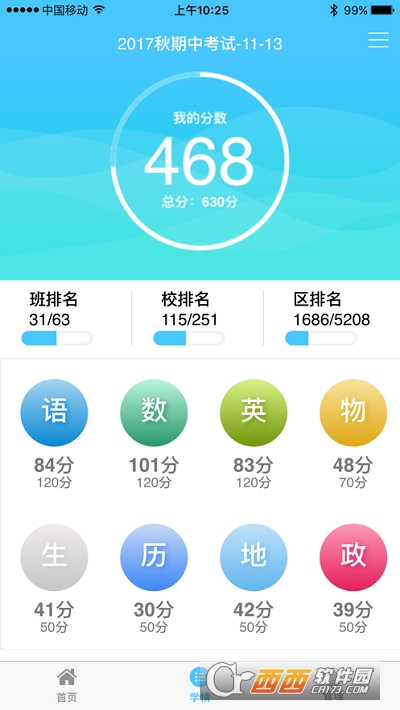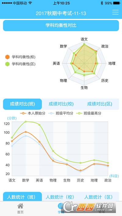 1、查看成绩、排名、学科均衡性、成绩对比、进退步、分段统计分析