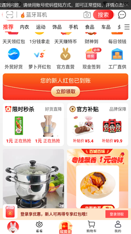 3、登录之后,系统就会自动给你赠送价值十元的红包,而且还会推送同价值的商品,领取红包就可以直接使用;