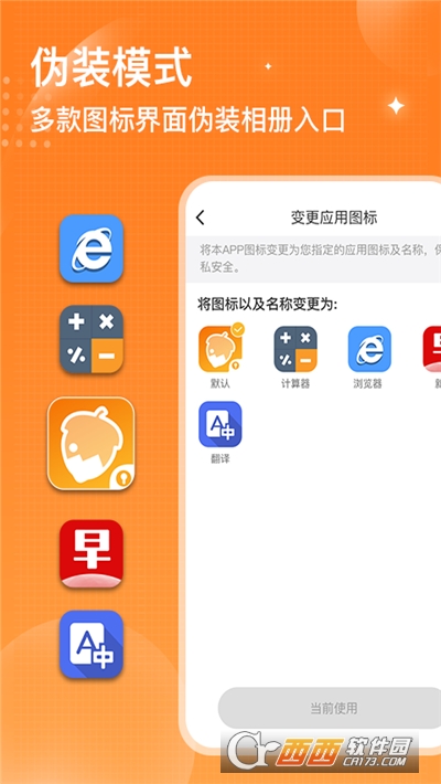 坚果隐藏相册是一款专业的相册伪装工具,可以帮助用户将相册的图标进行不同的图标更换,成功伪装成其他软件,随时添加各种图片、音频和视频内容,并且可以进行加密保存管理,为用户的隐私作保障,需要的伙伴,鳄斗163手游网即可使用哦!
