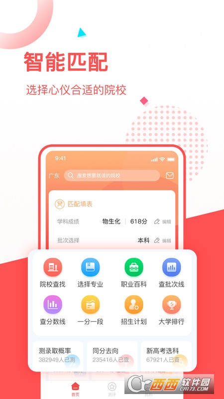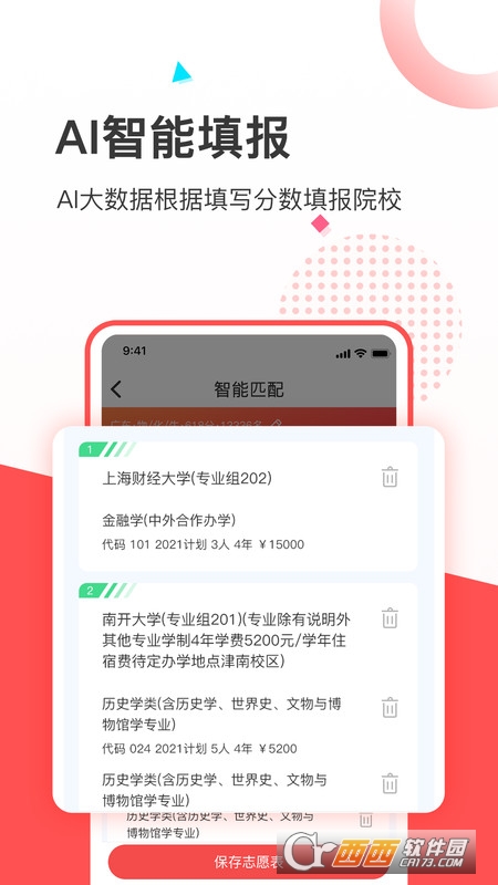 高考志愿填报推荐app推荐根据智能AI算法,精准匹配院校、省份、地区等信息变量。用更快的速度整合报考数据,帮考生用户规划冲稳保梯度填报顺序,降低填报风险做到科学填报。