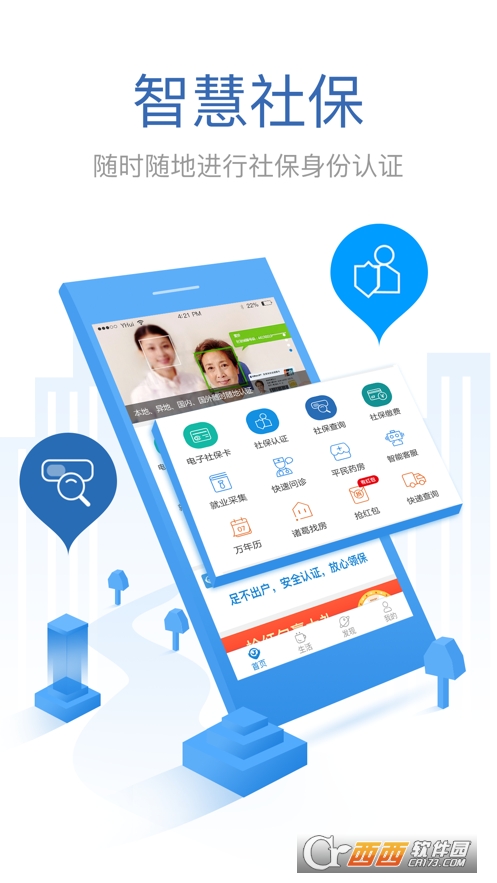 看看生活是一款覆盖人群多、地域广、使用量大的智慧社保认证软件,主要包含异地采集、社保认证、认证查询、认证通知、智慧出行、代缴社保、日常应用等便民功能。社保认证通过证件识别、人脸生存认证等核心识别技术,提供一套完整的社保信息验证流程。该软件采用了智能人脸识别模式 , 具有远程验证、异地验证等优点。更好的为老百姓提供安全、便利、稳定的智慧社保解决方案。