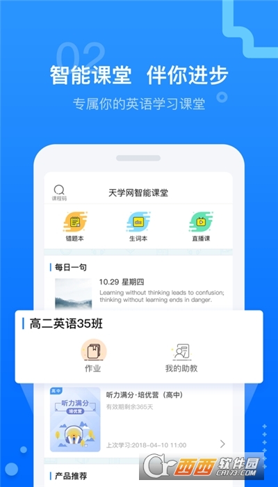 本应用为天学网旗下的手机客户端。客户端支持人机交互、智能实时评分、在线作业、学习数据智能分析、直播互动、展示投票等众多功能。将课堂放进你的口袋,使教和学更加人性化、智能化。此外客户端还支持天学网旗下众多经典产品在线或离线使用: