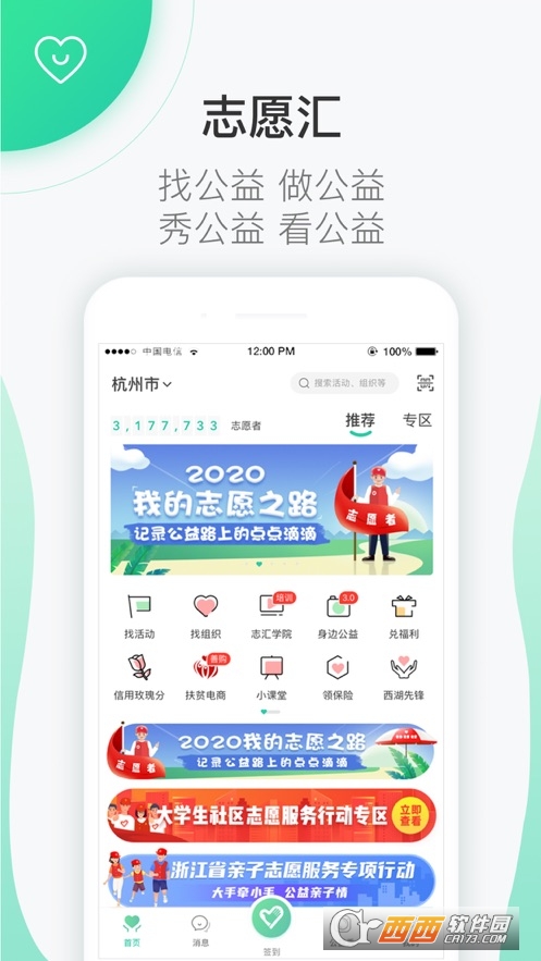 志愿汇app官方版是一个专业的公益活动平台,全国各地的公益爱好者可以通过这个软件报名参加一些公益组织活动,可以了解最新的公益资讯,让更多的人更加积极地投入到公益活动中去,让世界多出一份爱,赶紧下载体验吧
