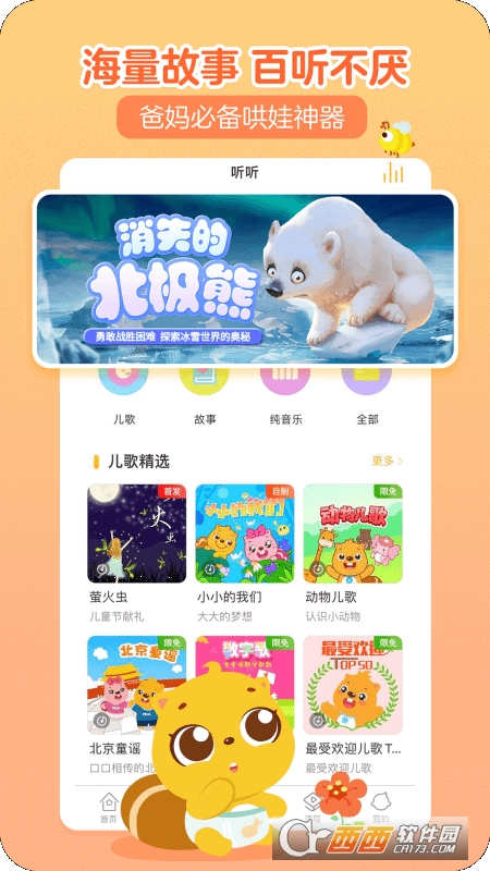 3000个原创版权内容,宝宝最爱的儿歌、故事、童谣、早教学堂及热播动画片尽在这里。