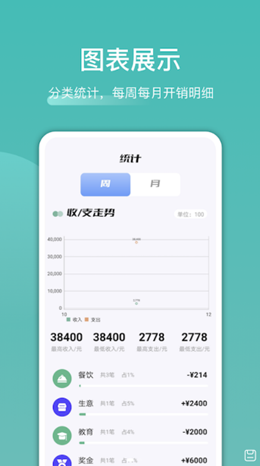 2,整体记录的所有收支统计模式都会自动进行汇总,方便更加良好的将所有内容进行计算并且表示,看到时间段内的消费。