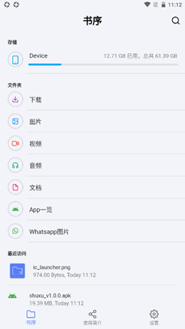 书序app是一款按照手机使用的习惯进行管理和开发的优质手机本地文件管理的工具软件,软件导入了对于图库资源进行图像和文档分类的模式进行使用,随时查看文件的图片和视频资源,多视图排序,看起来分类更加详细,保证了每个文件栏目的展示。