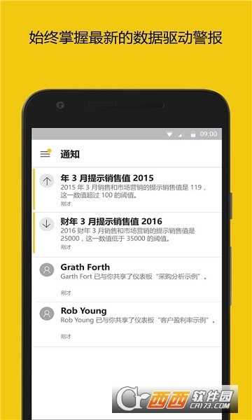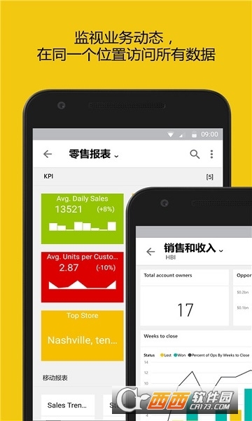 借助 Microsoft Power BI 应用,您可以持续对仪表板进行移动访问。