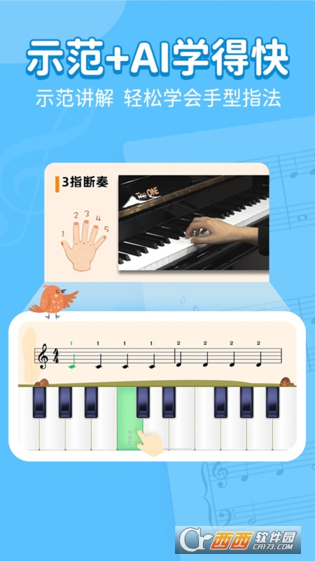 视频讲解和AI考核游戏相结合,重视培养练琴兴趣,有趣不枯燥。