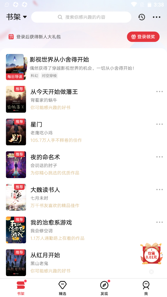2、只需要注册,就可以领取到非常多的优质的小说,我们还会主赠送免费的小说,各种各样的小说信息都会进行优化;