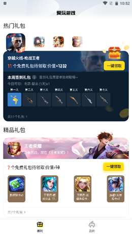 腾讯爱玩app是一款由官方说明出品的综合手游福利领取的优质工具软件,软件主要服务的就是各种腾讯系列的手游玩家,不仅通过签到就可以完成每天礼包的领取,而且没有太多限制一个账号可以领取不同游戏的礼包,轻松享受福利领到手软的过程。