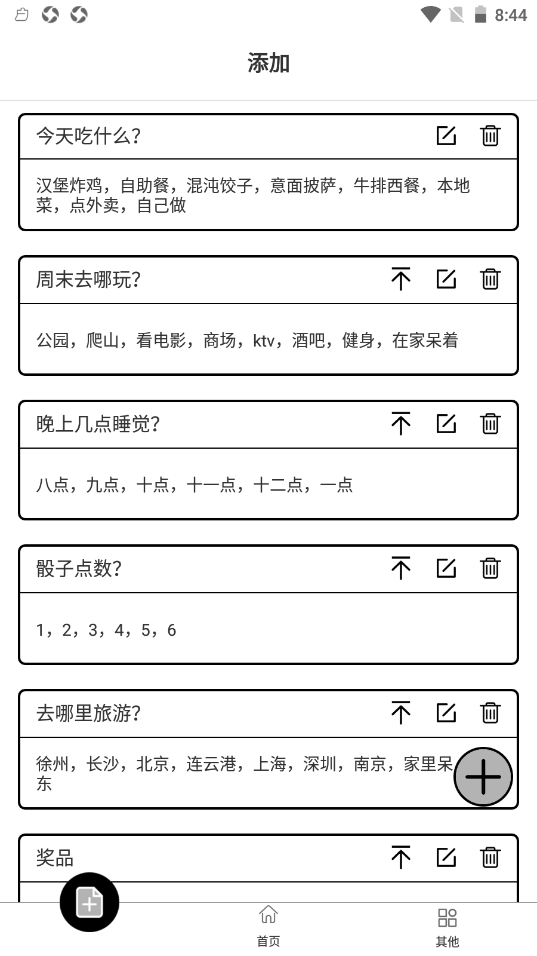 1、每个用户都可以在平台上添加到自己喜欢的选择版块,包括大转盘选择,以及筛子选择,又或者是石头剪子布;