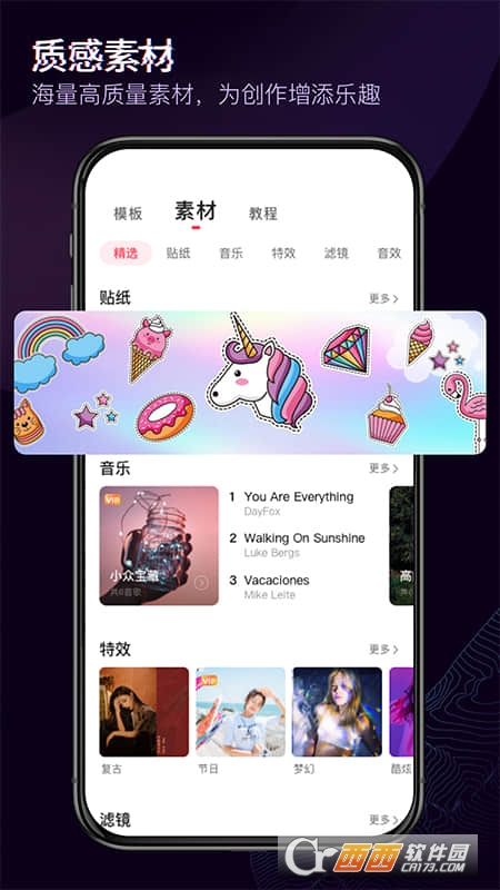 你的视频,值得最好的点缀,特效、音乐、字幕、贴纸、片头、水印,视频素材全免费