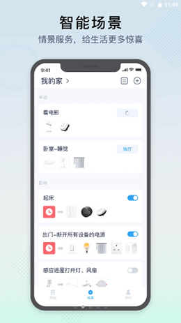 1,多场景的功能内部可以按照智慧场景将生活中不同类型的生活习惯诸如到设备中进行自动编码管理,到点提醒,服务用户养成良好的生活习惯。