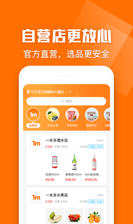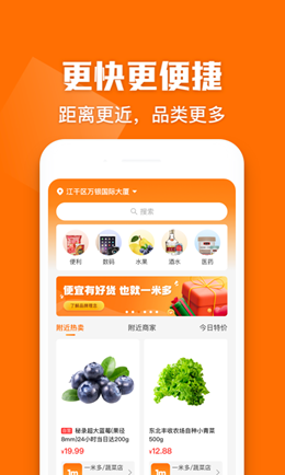 1,一米多闪购app主打的就是本地化的商品更新和送货,通过高级的商品门店合作机制,将定位服务进行更新之后就可以立即开始下单,锁定附近门店进行配送。