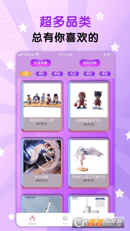 而且抓娃娃部落APP有特别多的品类可以选择:数码、热门IP手办