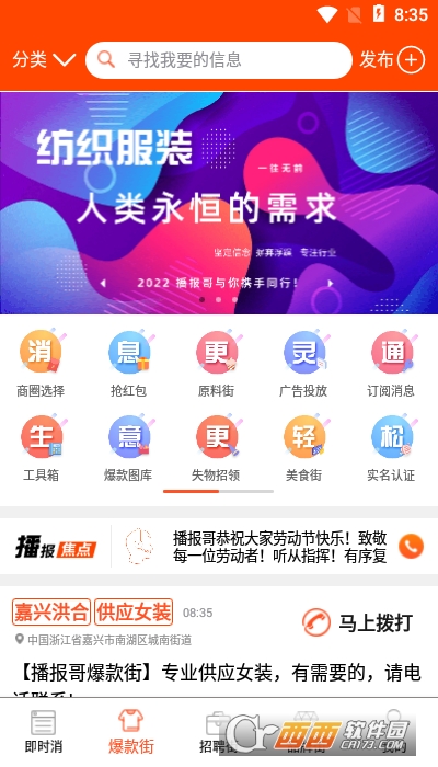 播报哥手机客户端是款行业播报软件,针对服装,以及其他相关行业,并且,每天会更新最新的行情资讯,让商家用户或者是个体用户能够把握行情,并且免费提供一些专业的数据,欢迎来鳄斗163手游网播报哥手机客户端体验