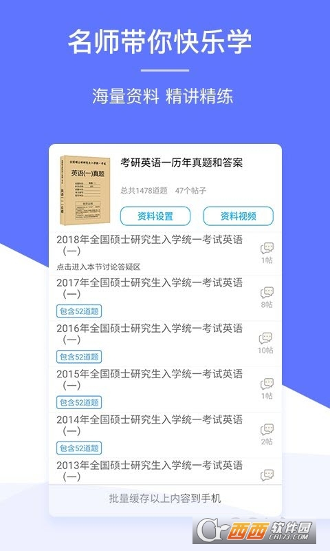 网罗了全国历年的高考,四六级考试,考研,mba,经双等考试的历年真题资料,实现了课本电子版。