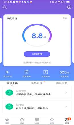 1,对接的管理工具模式不仅可以用来缓存和下载不同的资源,还可以轻松的管理手机的内容,包括清理垃圾等等。