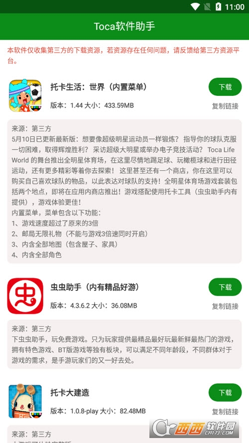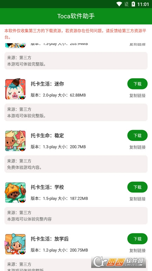 toca软件助手app是一款专为喜欢托卡系列的用户而打造的游戏下载工具,由第三方用户打造,不仅可以看到所有的游戏资源,还有辅助工具和破解版本可以下载,给你带来一个最全面的下载体验.