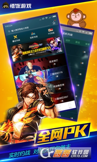 悟饭游戏厅是一款联机对战模拟器工具。支持街机、GBA、PSP、FC等上千款游戏。拳皇97网络实时联机对战,全国玩家自动匹配,无延时联机。深度定制遥感搓招,自定义组合件,一键技能!真正意义上,好用的联机模拟器。