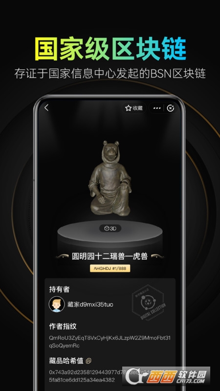 平台采用国家信息中心、中国银联、中国移动等牵头发起的国家级区块链(BSN区块链)对数字藏品进行存证,以IPFS星际文件系统托管与永久存储藏品数据,技术能力在数字藏品赛道中较为领先。