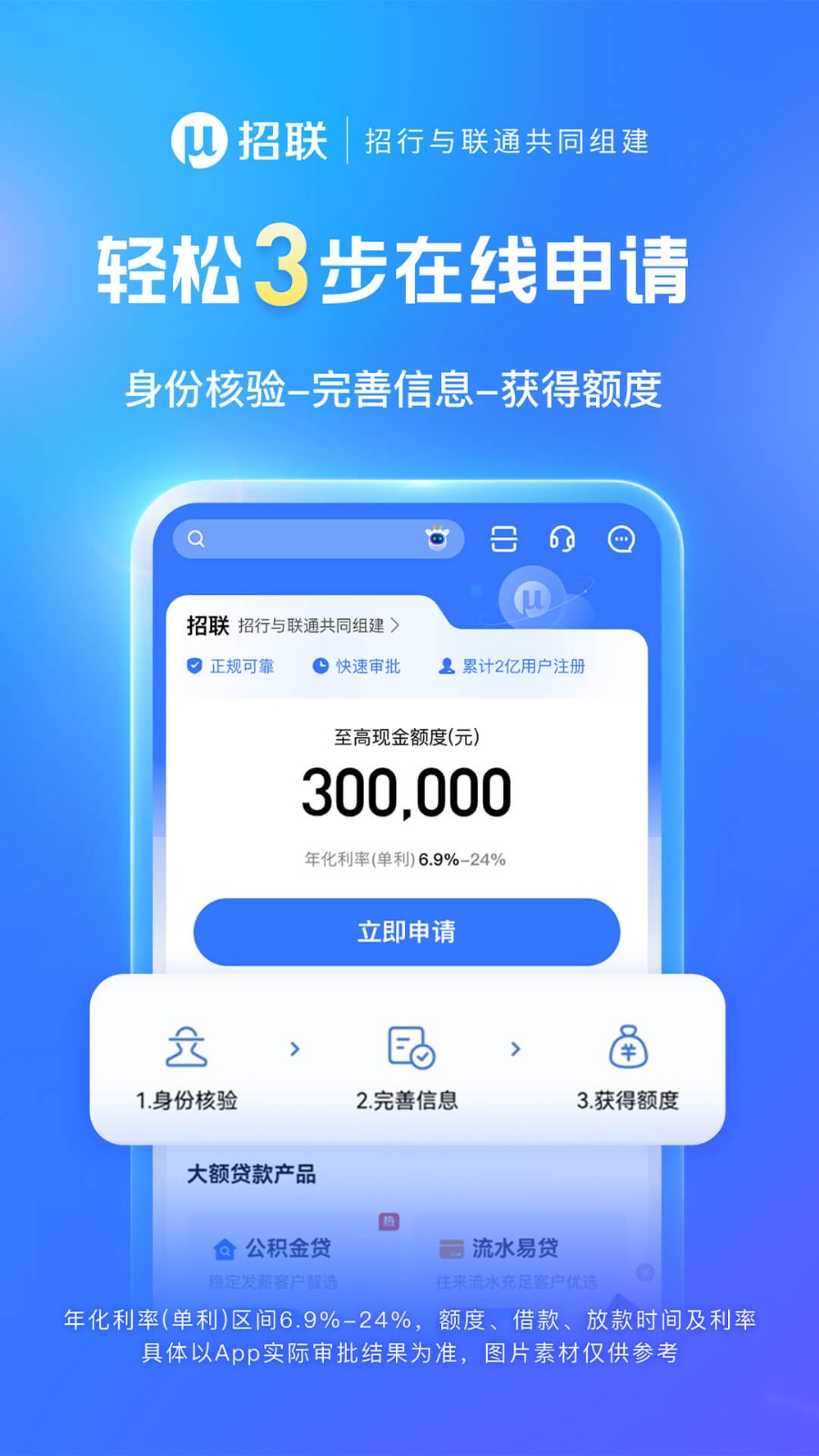 招联金融由招商银行、中国联通共同组建,由银监会批准设立,是持牌的消费金融机构,采用银行级安全保障,为您的信息安全、资金安全保驾护航。