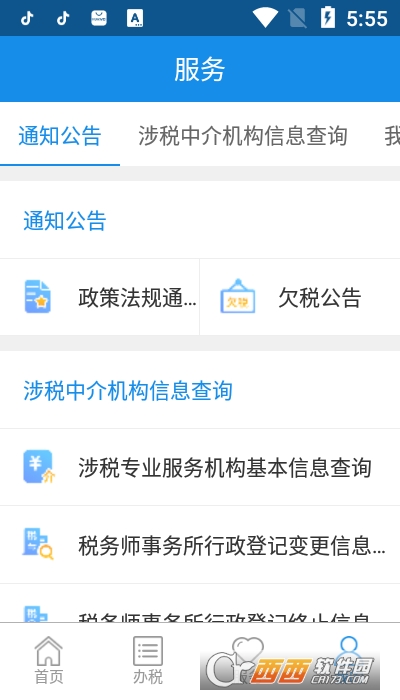 (三)服务:四川税务app提供查询,权益保护,预约办税,通知公告,咨询辅导,公共查询五大项服务。