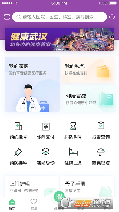 健康武汉APP给居民提供在线智能导诊、预约挂号、排队叫号、报告查询、报告查询、门诊支付、住院预交金、住院费用清单服务等,同时居民可以随时随地查询自己的医疗、公卫各类健康档案。并且在健康武汉APP中居民还可以查询居民自己的家庭医生团队相关信息,包括家庭医生成员、签约相关信息、居民可以享受的服务包、服务计划等家医服务