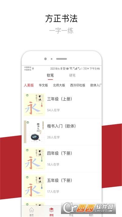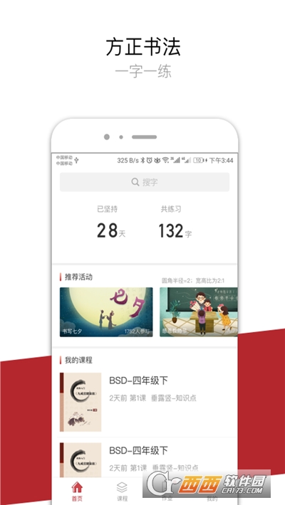 方正书法学生端是一款书法学习练字软件,在这里拥有软笔字和硬笔字,用户还可以自由选择想要练习的字体课程内容,专业的书法大师为你授课,用户可以参与相关活动,还可以记录练习情况,赶紧来鳄斗163手游网吧!