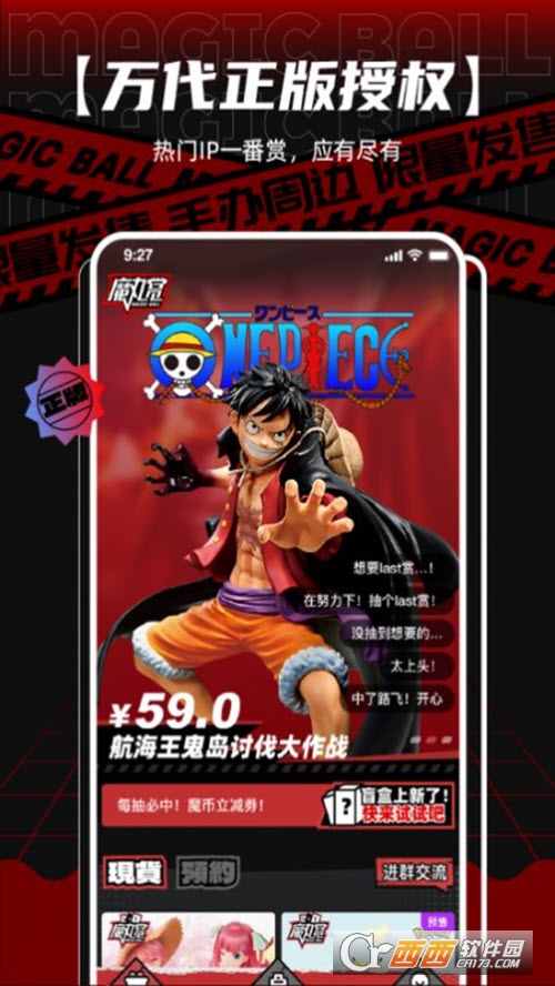 【万代正版授权】 魔丸赏是一款线上一番赏售卖平台。龙珠系列、海贼王系列、新世界福音战士系列、鬼灭之刃系列、刀剑神域、高达系列、宝可梦、五等分的花嫁与你一起、夏目友人帐、假面骑士等热门IP一番赏,应有尽有。