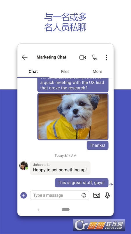 进行私人或群组聊天,并在专用频道中与整个团队通信