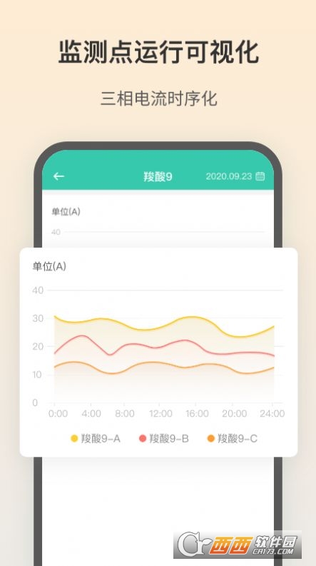 软件界面简洁清晰所有的功能一目了然,你可以快速的找到自己需要的功能服务,提供的功能还是非常强大的,你可以实时预览企业的运行情况,开启和关闭都会及时的通知,采用了可视化的监测点运行服务,三相电源使用情况实时呈现。
