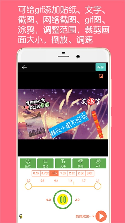 5、可添加任意数量的文字、贴纸、自定义图片、GIF图片到要制作的GIF中