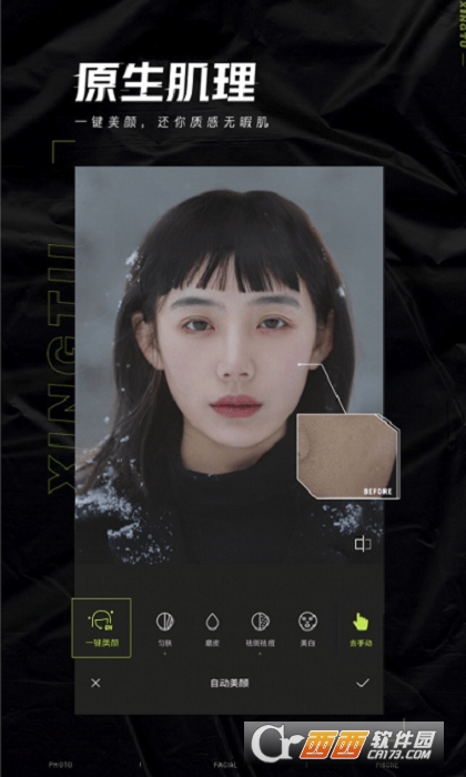 一键操作,拥有高级质感肤质,自然细腻不假白,轻松修出好肤色。