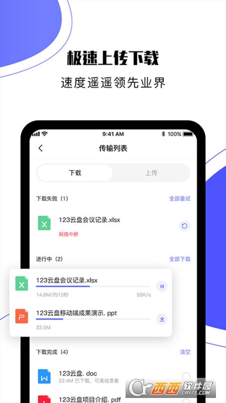 123云盘手机版,网盘工具,提供手机端文件传输保存下载功能,传输速度快,空间充足,能满足您的云存储文件管理需求。123云盘手机版提供免费存储空间,资源存储足够用,需要一款手机端云盘存储工具的朋友们可以下载使用哦!