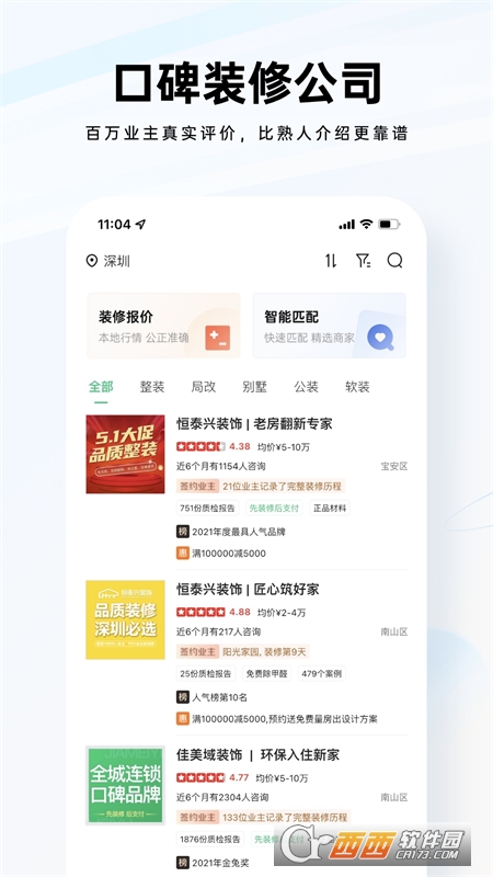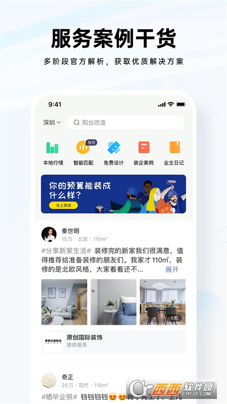 装修公司大全是一款专业的装修服务软件,在这里拥有服务案例干货内容,多阶段的官方解析,随时获取各种解决方案,实时了解本地行情,还有智能匹配、免费设计、装企案例和业主日记服务,随时找装修公司,选择案例,线上报价,鳄斗163手游网使用吧!