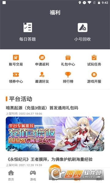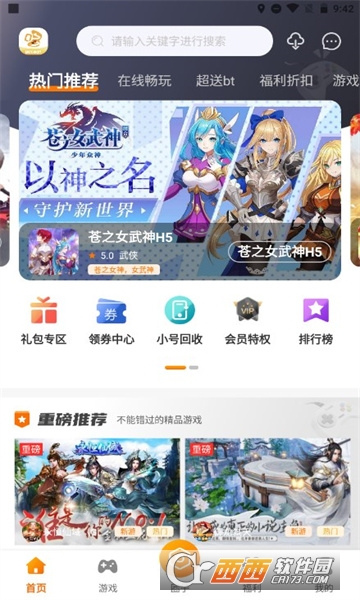 2、大型游戏:集合全网公益服手游,包括BT版、满VIP版、GM版。