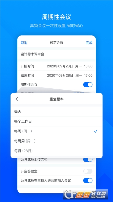 界面清爽简洁,一键预约、发起、加入会议;