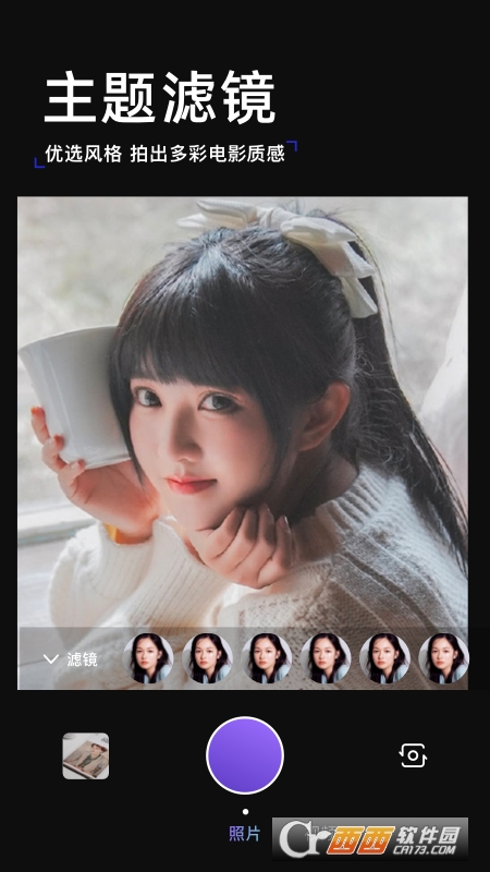InterPlus滤镜:除了大师专属滤镜,我们还为每个拍摄场景准备主题滤镜:人像、美食、胶片、黑白、经典电影滤镜等,