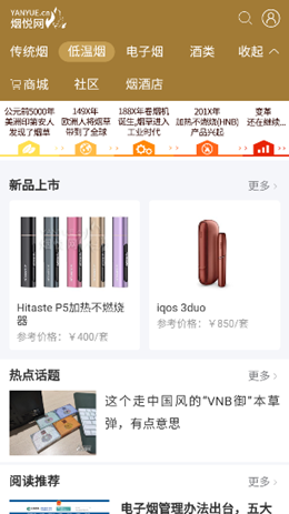 2,对于香烟平台上拥有非常完善的分类模式,从传统的香烟到后续的电子烟以及低温烟等等,所有内容更加方便的来查看匹配,发现热门的市场变化。