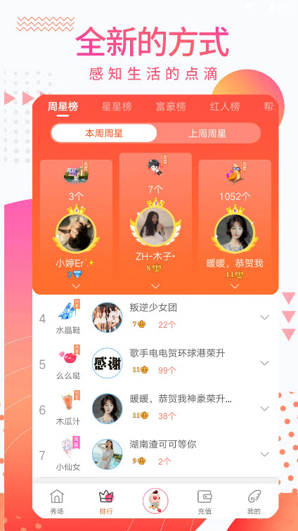 1,在线视频K歌、激烈PK排位赛,活动不停,守护你喜欢的主播,零距离陪你精彩陪你嗨。