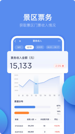 1,重庆旅投app设计了非常高级的景区票务统计模式,所有的数据情况都可以及时来进行更新汇总,不仅拥有票务统计模式也可以来完成各种内容的分析。