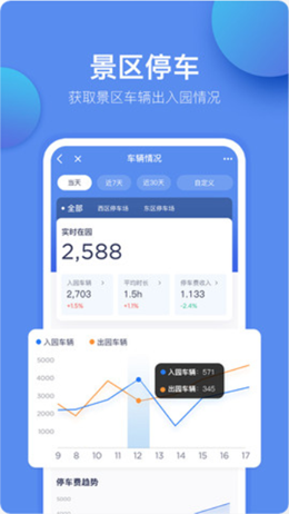 2,按照时间的说明以及日常的运营模式可以帮助用户统计景区附近的停车场位置管理模式,更加轻松的进行部署和管理,曲线图一目了然,提高整体的收入统计。