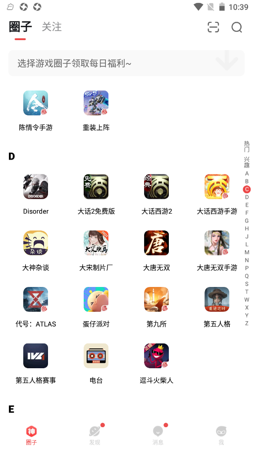 1、进入软件之后,我们可以在首页看到各种各样的网易游戏,我们可以加入自己喜欢的游戏社区,直接在搜索框里面搜索喜欢的游戏;