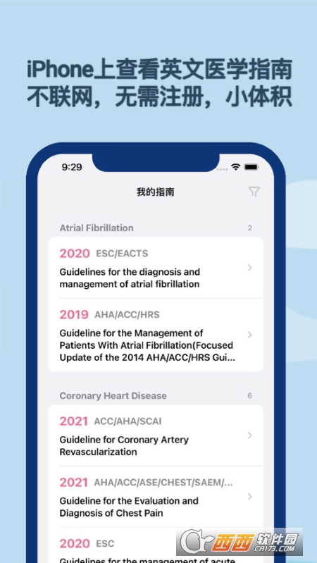 crux使用方便,无需联网,无需注册,目前内置了>20部代表性权威国际指南:糖尿病/房颤/冠心病/高血压/心力衰竭/卒中/肾病,作者将会以每月1~4部的频率增加新内容。