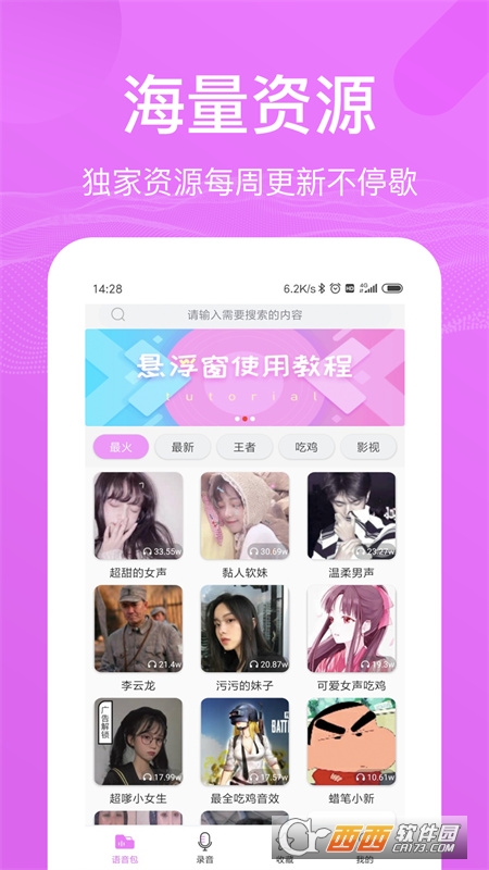 免费下载 大小:50.0M 下载:1次 语音包变声器 V2.2.9 支 持:安卓 分 类:安卓软件 大 小:50.0M 版本号:v2.2.9 发 布:2022-05-18 11:08:59 手机扫码免费下载 #语音包变声器 V2.2.9简介 语音包变声器是一款为用户朋友们打造的变声器app,现在很多用户朋友都会玩王者荣耀已经和平精英,很多玩家都会使用变声器来增加游戏的趣味性,其实用户朋友自己也能够制作有趣的语音包,平台会提供给用户朋友很多已经做好的语音包还是免费的,喜欢的朋友来下载试试吧! #语音包变声器 V2.2.9截图