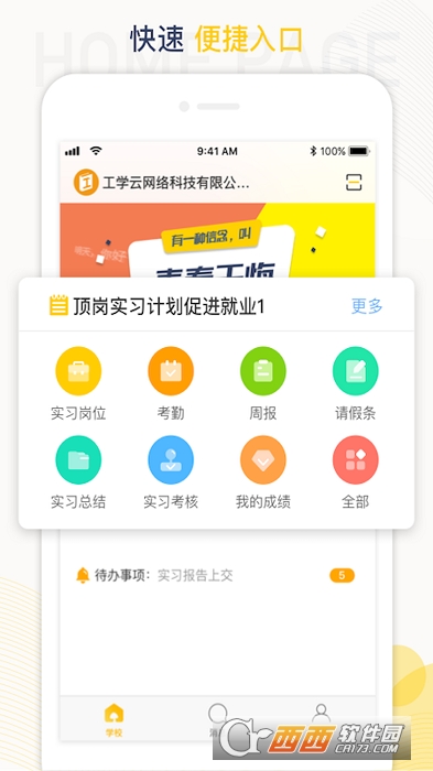 工学云APP是专注高(中)职业院校实习管理的云服务信息系统――工学云平台移动端,可提供GPS定位签到、发布通知、实习报告、实习申请、实习秀等功能,实现实习流程化、过程化管理。