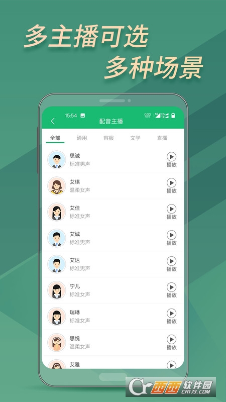 支持多种场景主播音色:通知类、客服类、文字类、直播类、英文、方言、多语种,可根据实际的场景需求选择适合的主播音色。