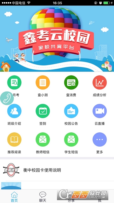 鑫考云校园是一个能够为家长提供在校学生学习、生活等方面数据查询的应用性平台,通过收集学生成绩、消费、校园活动等信息,将数据进行综合处理,以通知、图文、视频等方式传递给家长,最终实现信息共享、家校互联、为教育创造更高品质的服务支持。