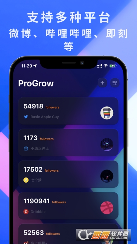 ProGrow 是一款高效的粉丝数跟踪工具,让你可以实时在手机桌面上查看不同社交平台的粉丝数据。